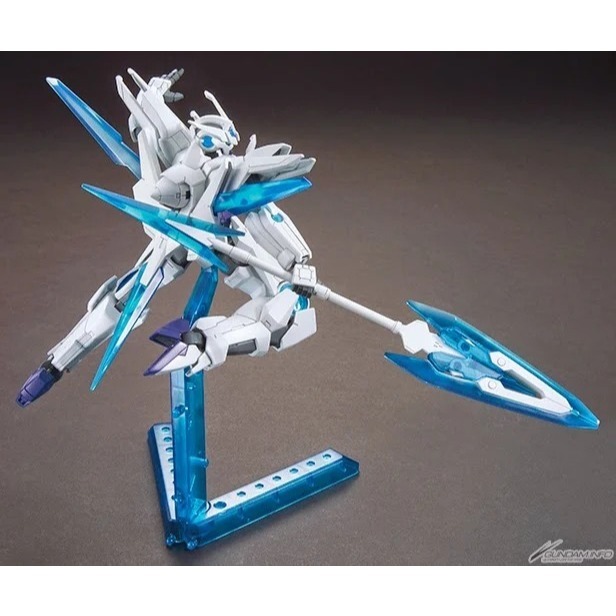 Wilfried Kijima’s Transient Gundam from Gundam Build Fighters Try makes its stunning appearance in the HG 1/144 line! This sleek and elegant Mobile Suit is accented with clear blue parts, adding a dynamic energy to its armor and its signature GN Partisan spear.